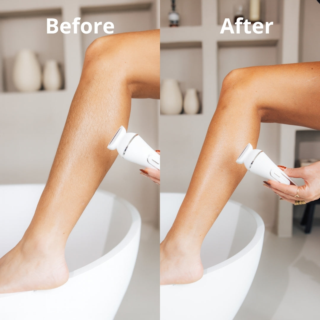 Because the device trims at skin level without friction, it prevents razor burn, ingrowns and strawberry legs.